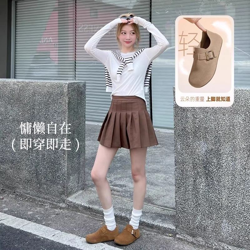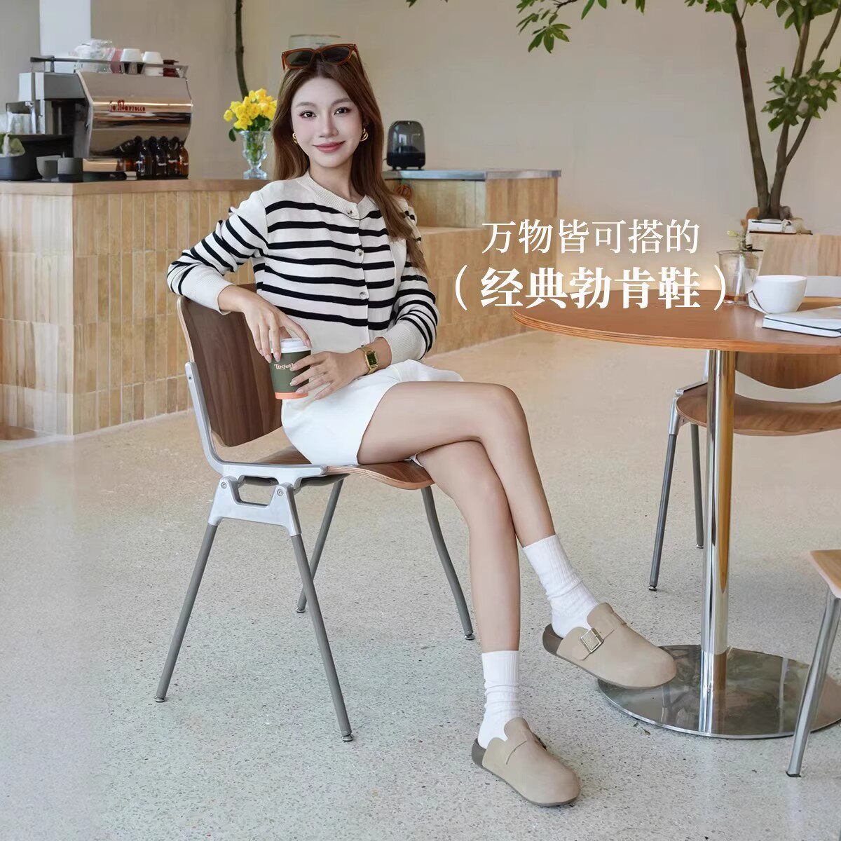 骆驼女鞋2025秋冬新款懒人一脚蹬外穿拖鞋包头复古厚底加绒勃肯鞋