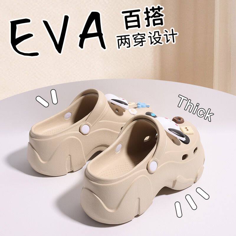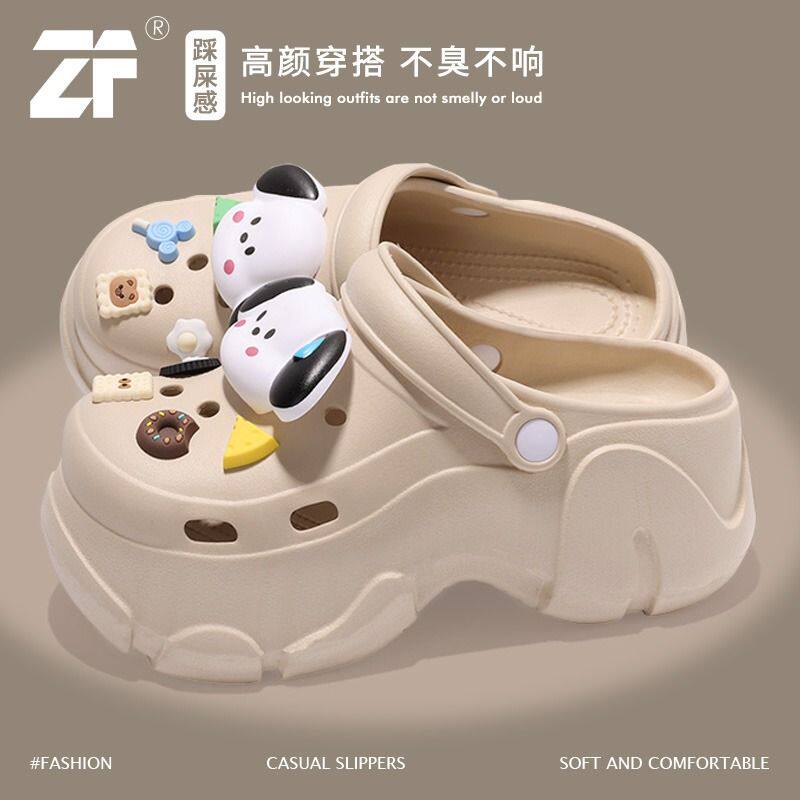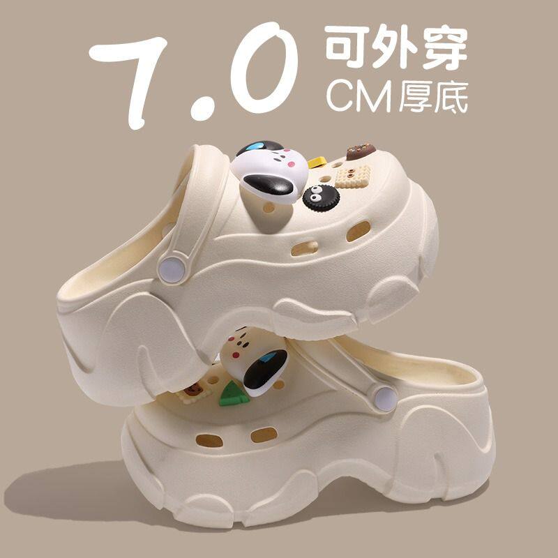 帕恰狗洞洞鞋女士增高2024新款夏季网红可爱外穿厚底防滑包头凉拖