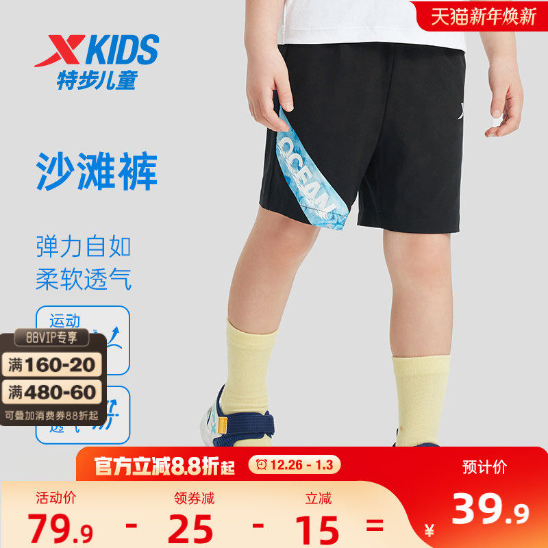 特步童装小童宝宝速干五分裤2025年夏季新款儿童短裤男童薄款裤子