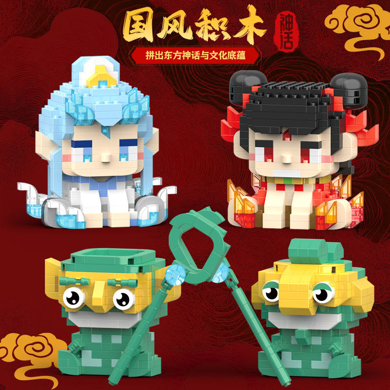 2025新款哪吒熬丙敖光公仔微颗粒积木玩具男孩儿童拼装摆件申公豹