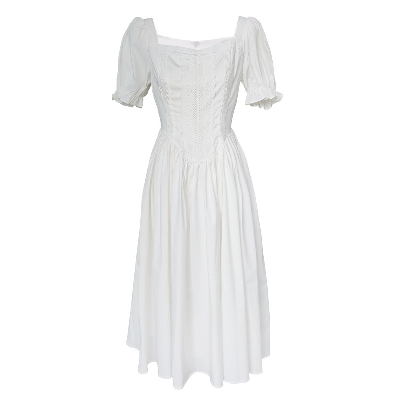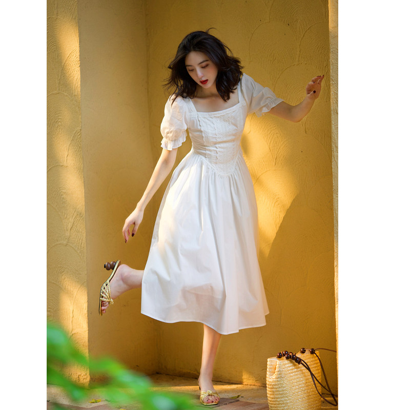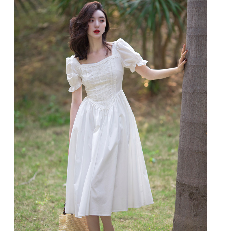 初恋系白月光茶歇小白裙法式蕾丝花边连衣裙白色仙女裙子高级感夏