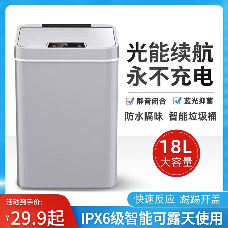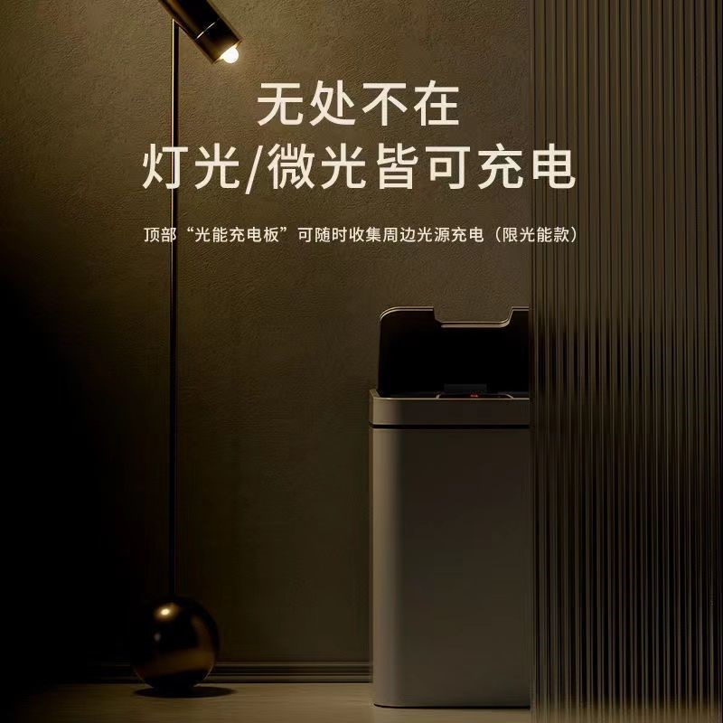 光能免充电智能垃圾桶全自动感应式厕所客厅卫生间厨房家用防水