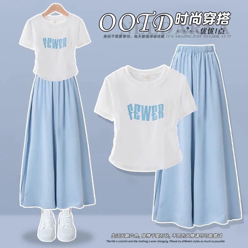 女童套装夏季薄款时尚冰丝裤休闲裤裙两件套儿童宽松阔腿裤新款