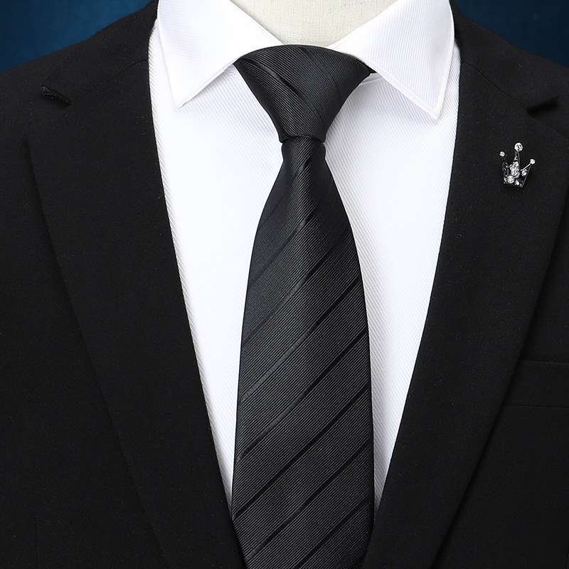 领带男免打结韩版拉链式暗条正装男士8cm学生女西装黑色黑色商务