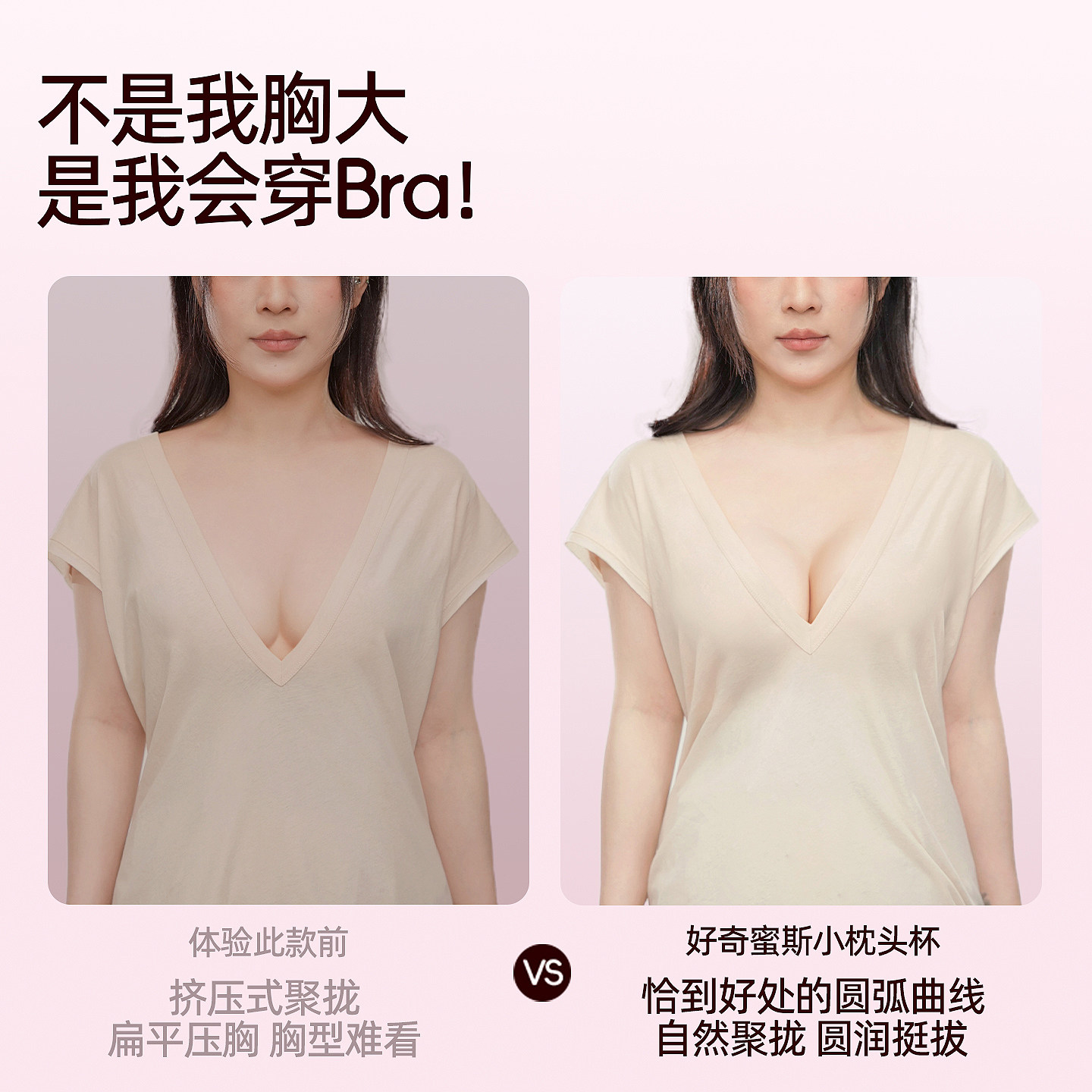 润微提拉女王内衣女大胸显小无痕大码调整防下垂收副乳粉底液文胸