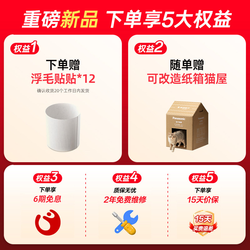 松下宠物空气净化器家用吸猫毛浮毛除臭异味除菌消毒机PTZ450C
