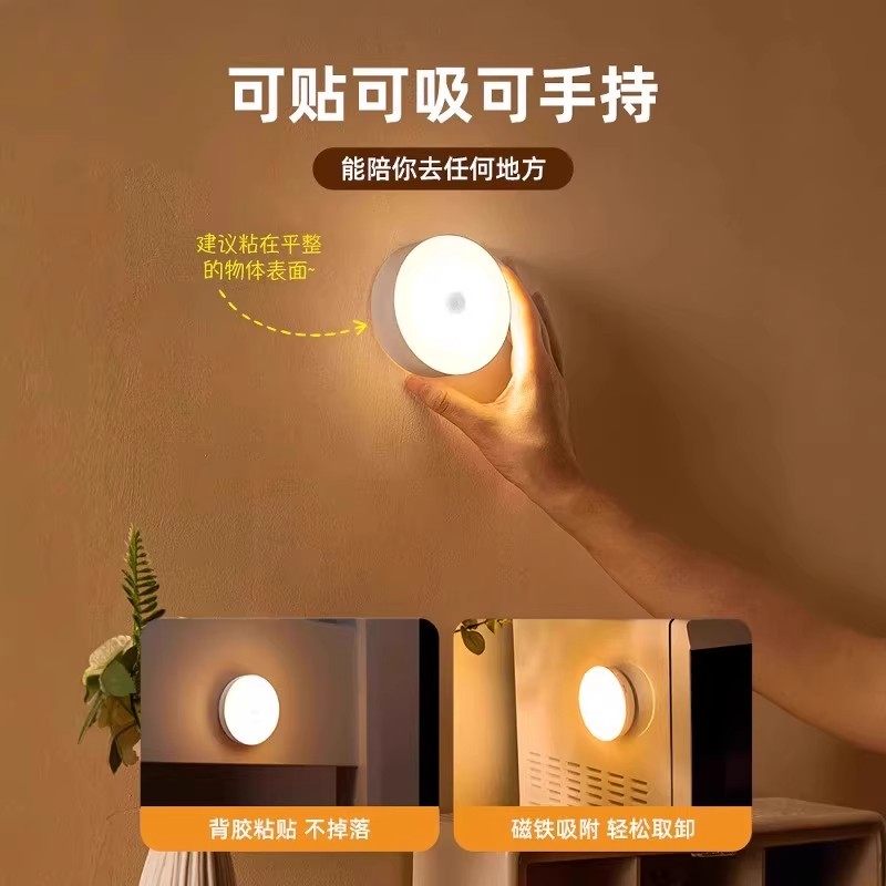 人体感应灯夜间自动过道2025新款智能声控充电小夜灯卧室床头亮人