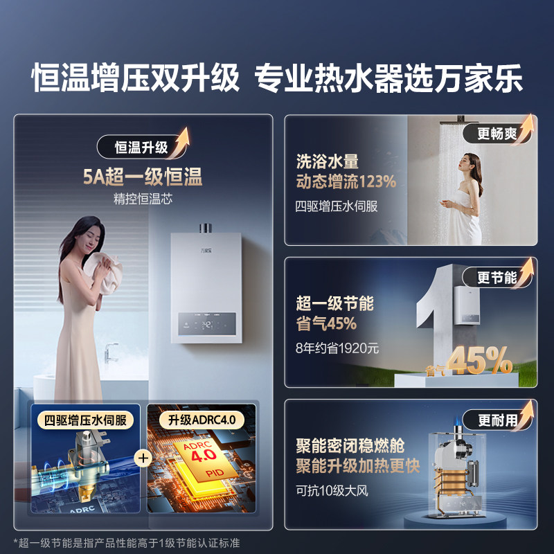 政府补贴万家乐安睡洗天燃气热水器1级节能恒温16升静音TS6/P3PRO