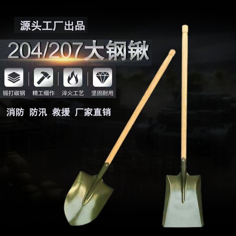 战备铁锹工兵锹防汛锹救援大号钢锹尖方锹铲子铁锨户外多功能平头