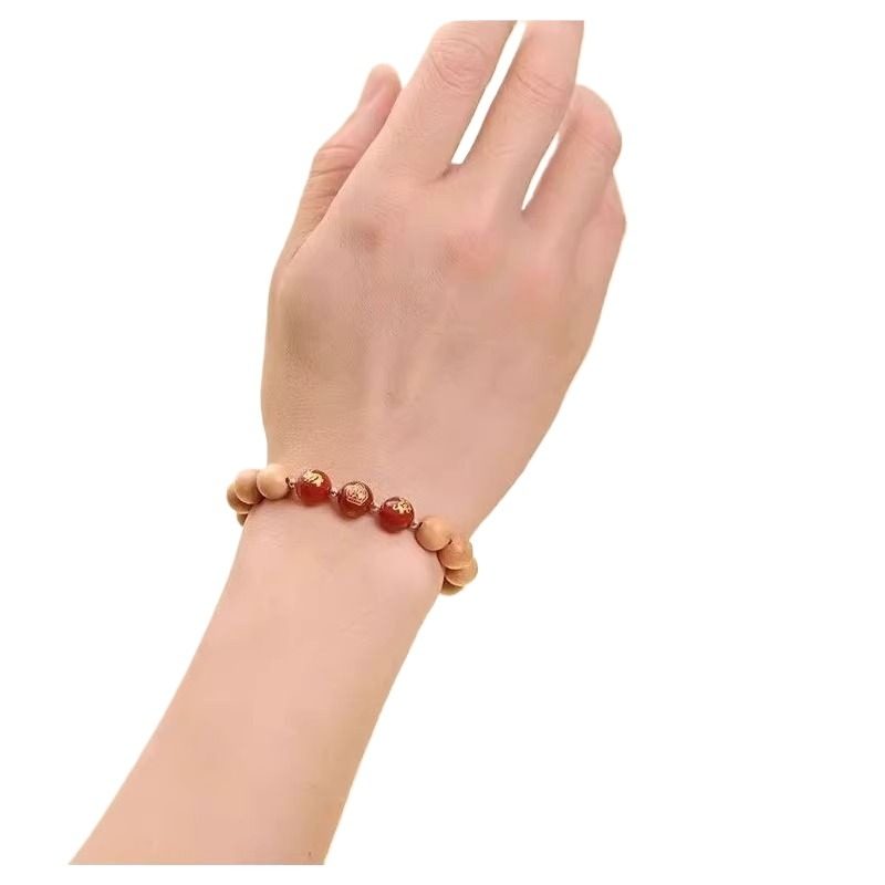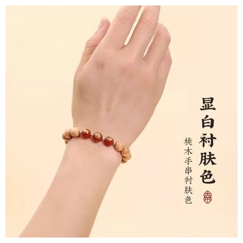 2025蛇年三合桃木朱砂手串六合本命年生肖转运马龙佛珠手链木质
