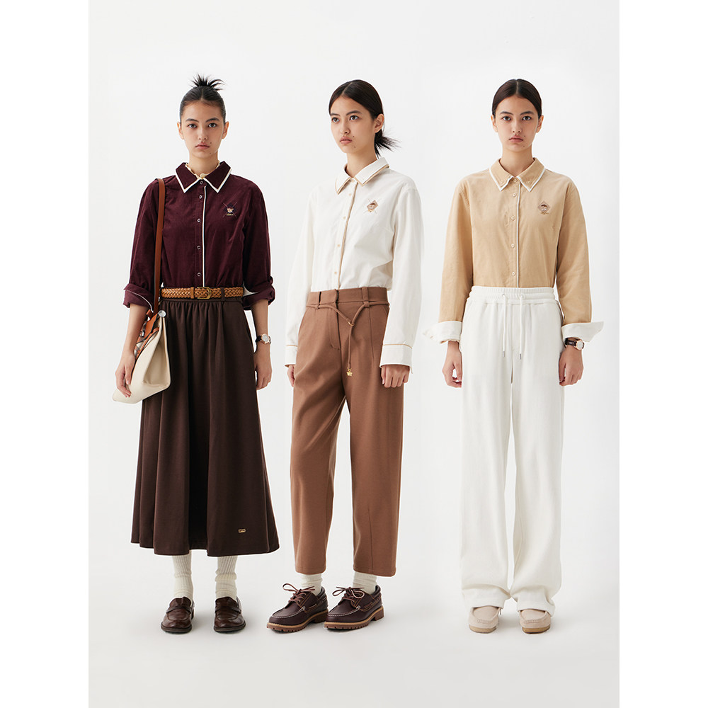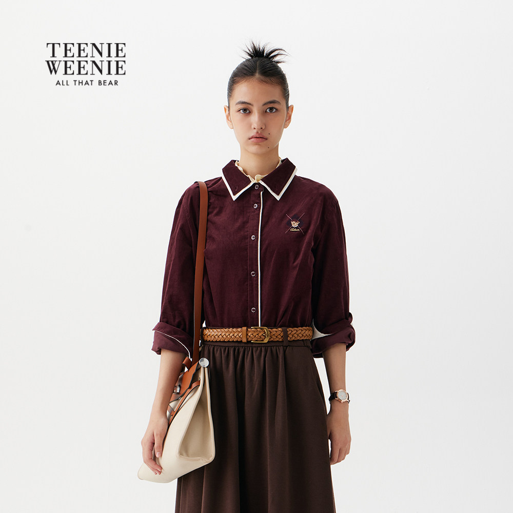 TeenieWeenie小熊女装衬衫2025冬季新款宽松翻领优雅时尚舒适上衣