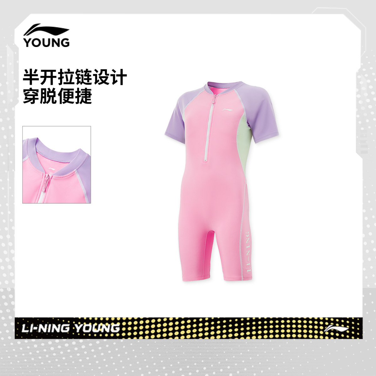 李宁童装连体泳衣女小大童新款游泳系列紧身夏季运动儿童装女款