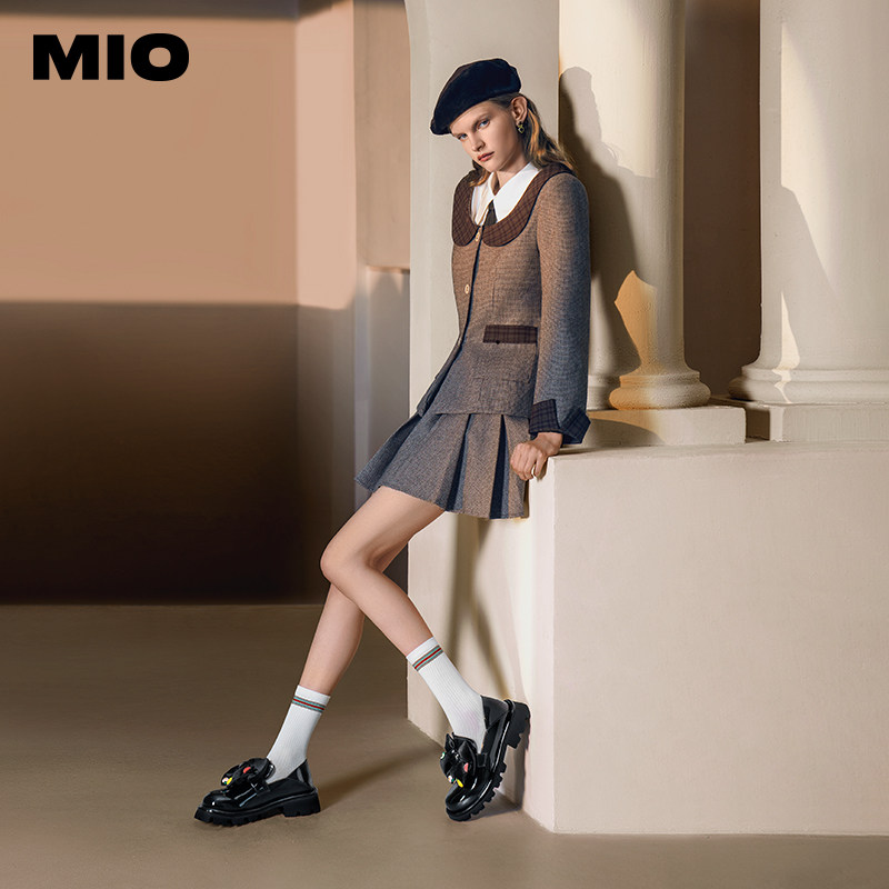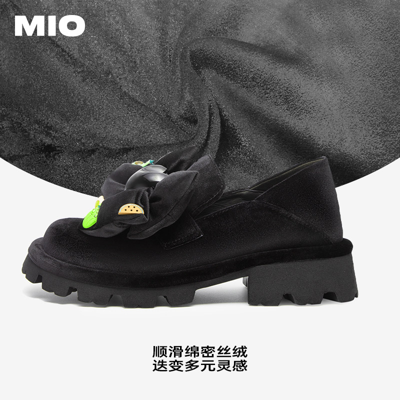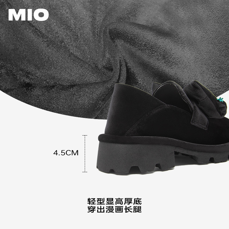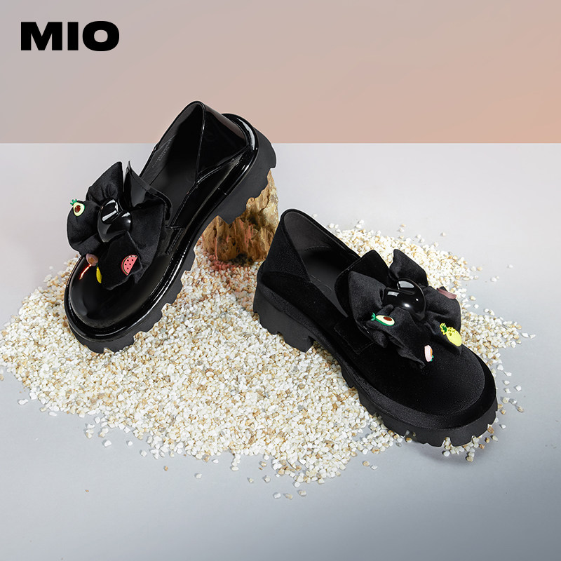 MIO米奥圆头小皮鞋大蝴蝶结女鞋漆面单鞋增高松糕底厚底乐福鞋