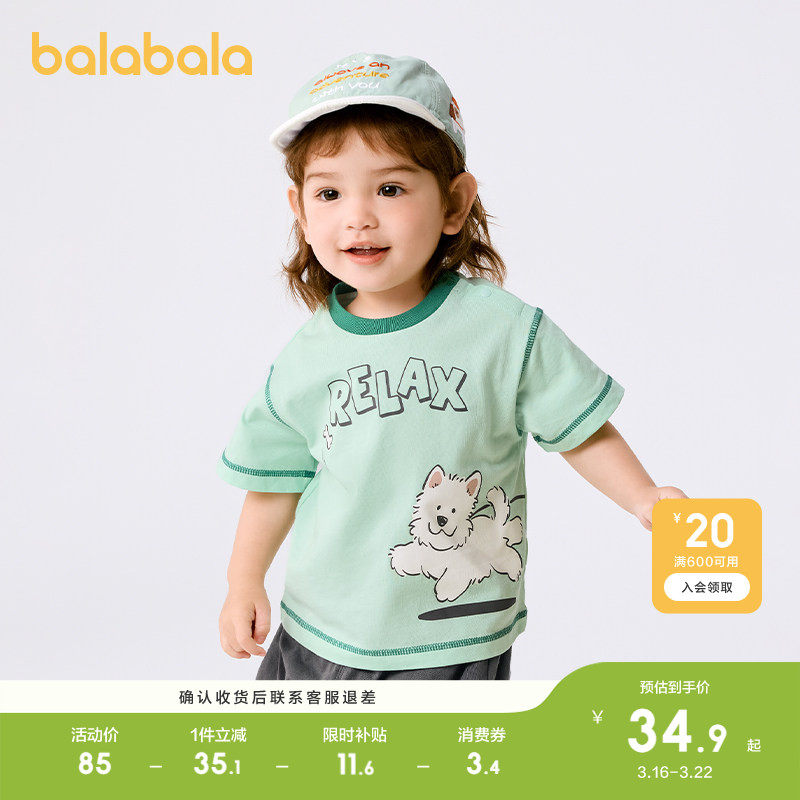 巴拉巴拉宝宝打底衫婴儿t恤男童短袖女上衣轻薄新款夏季宽松时尚