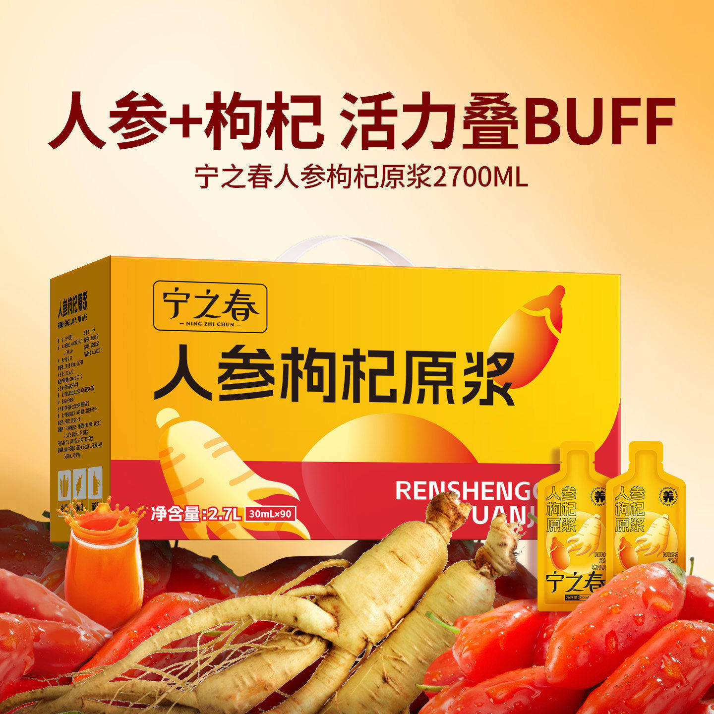 宁之春人参枸杞原浆送礼礼盒宁夏鲜榨枸杞汁长白山人参正品包邮
