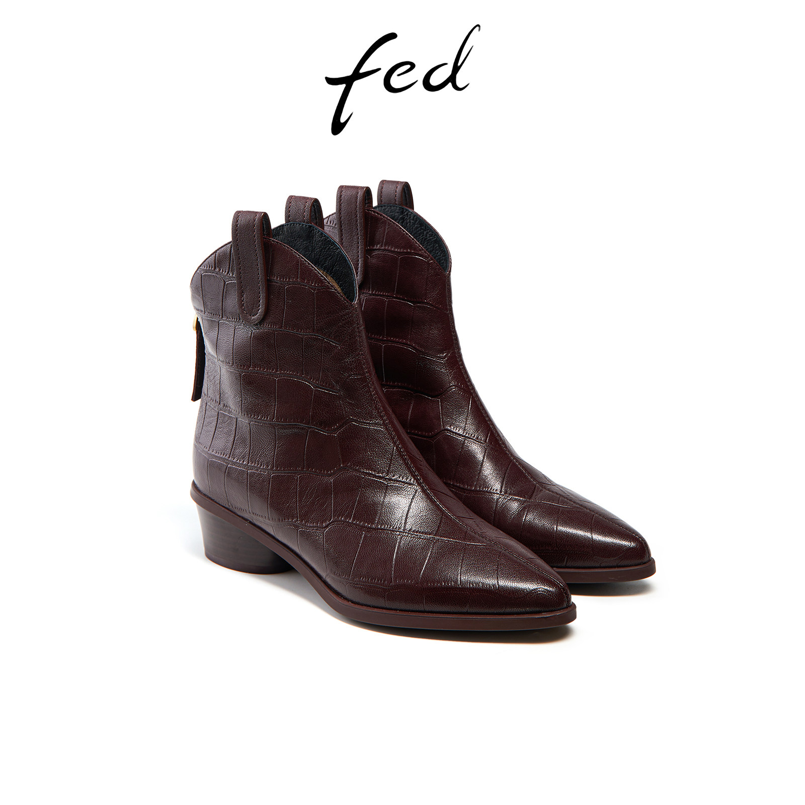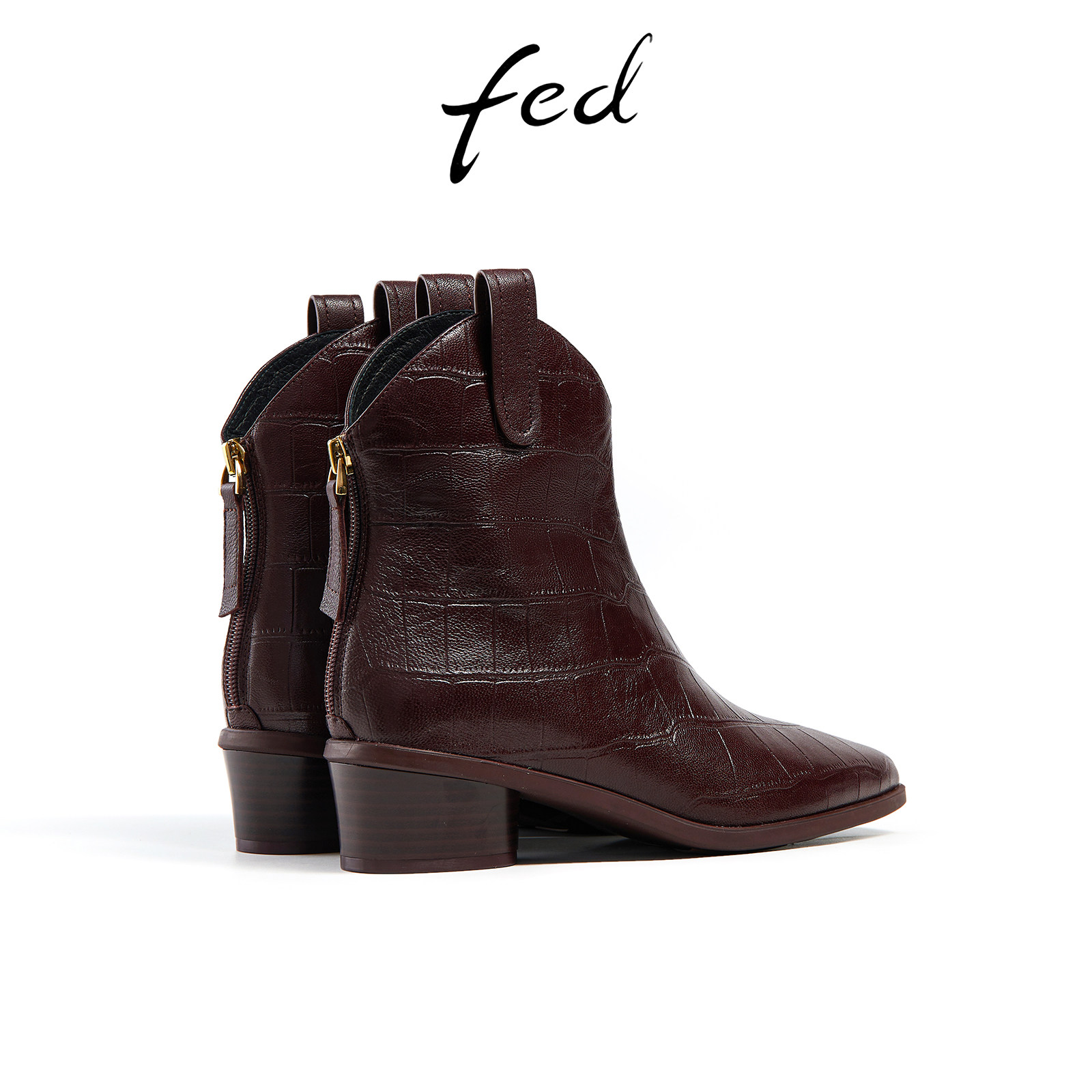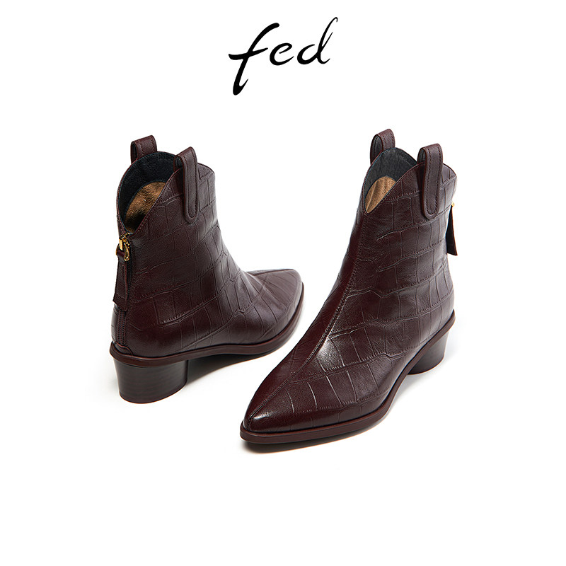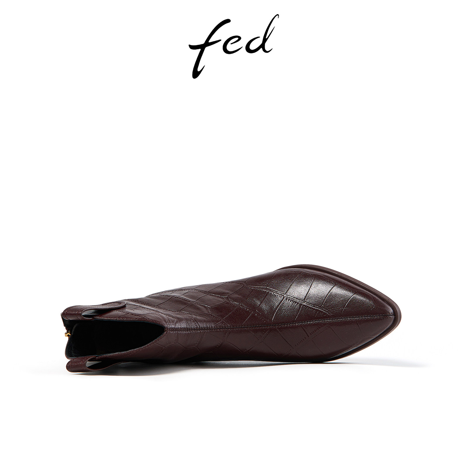 fed尖头时装靴冬季新款靴子粗跟短靴皮靴切尔西靴女R0921-ZCA251