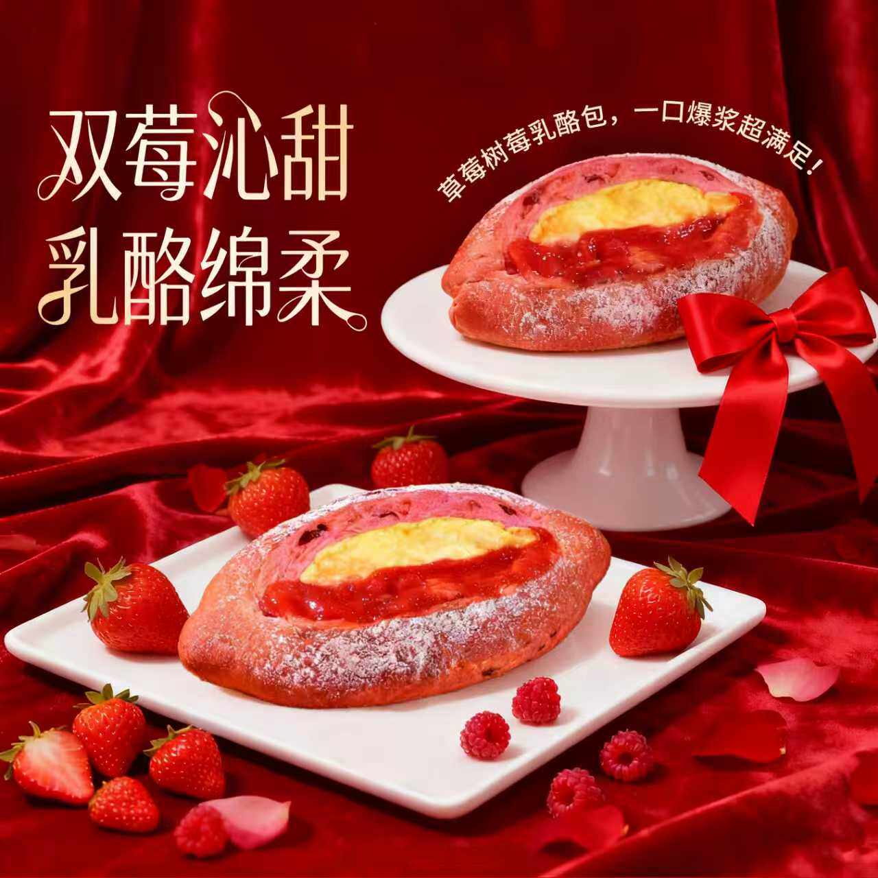 岩烧厚乳蛋挞面包草莓蓝莓夹心奶酪吐司健康早餐甜点芝士乳酪桑葚
