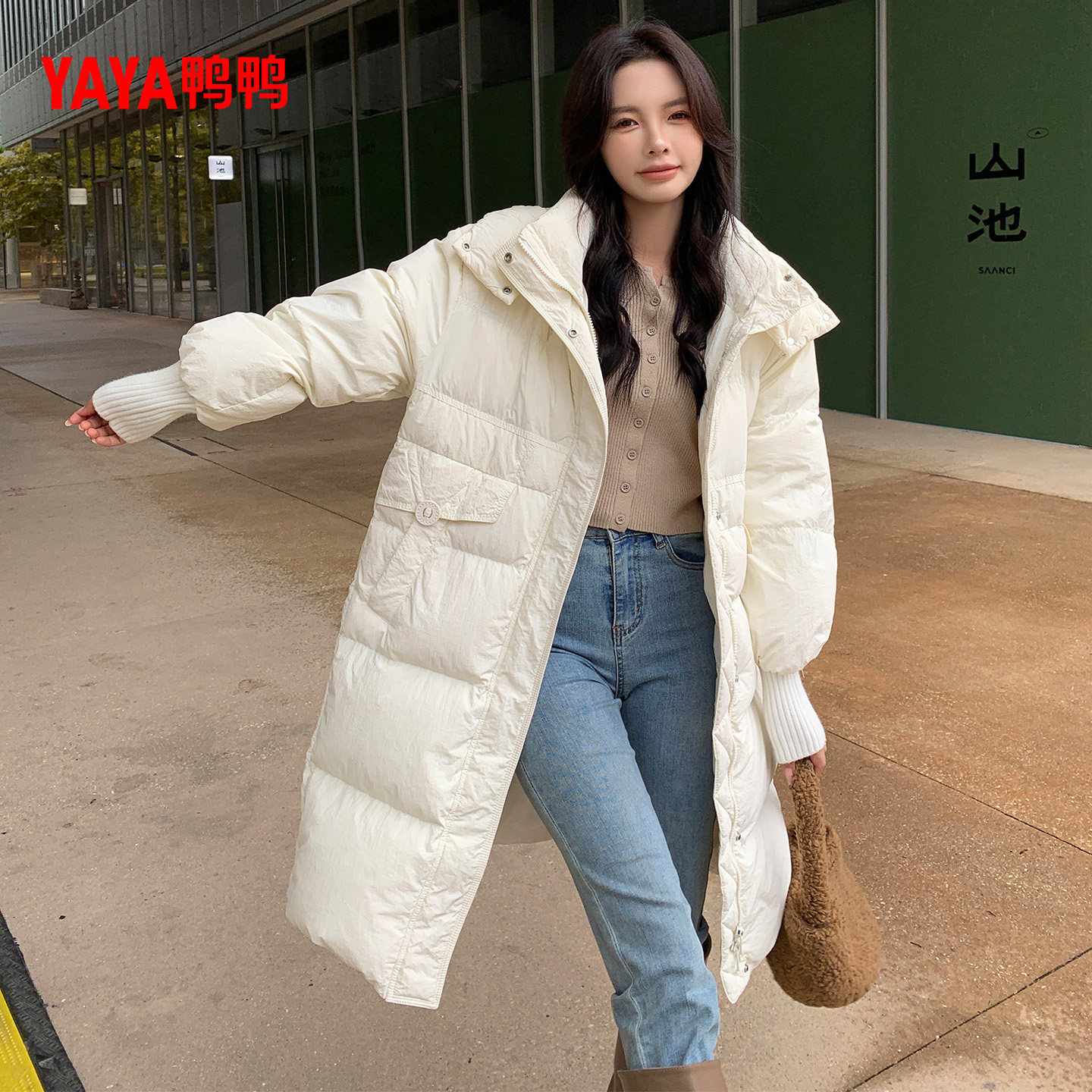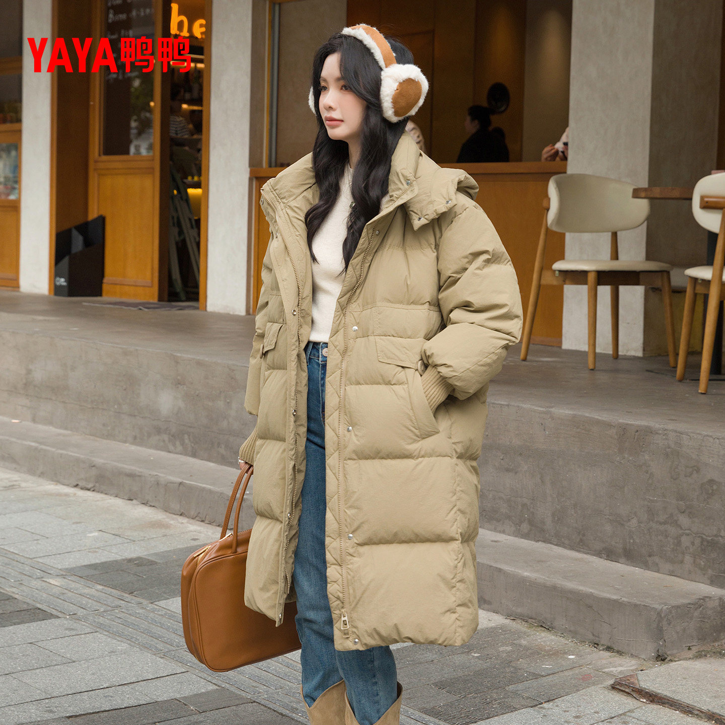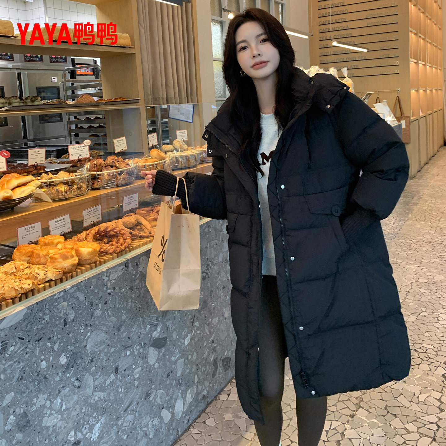 鸭鸭羽绒服女2025年冬季新款长款连帽加厚保暖休闲时尚百搭外套M