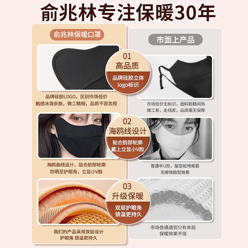 美拉德秋冬保暖口罩骑行防风御寒无痕显瘦修饰小脸型可水洗护眼角