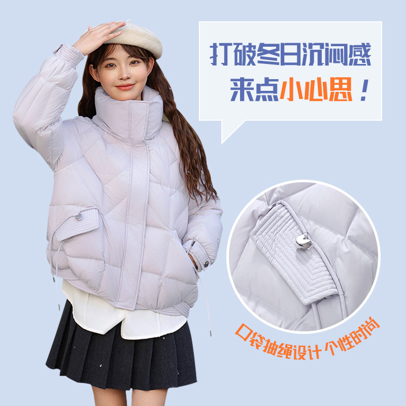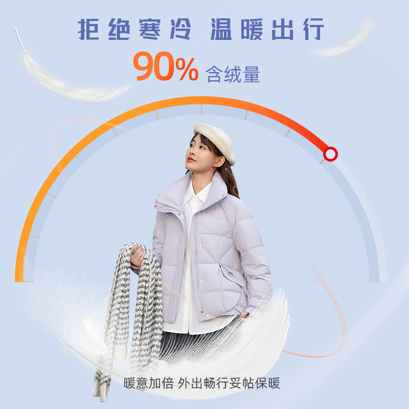 【鞠婧祎同款】鸭鸭2025年冬新款百搭短款女士纯色立领羽绒服外套