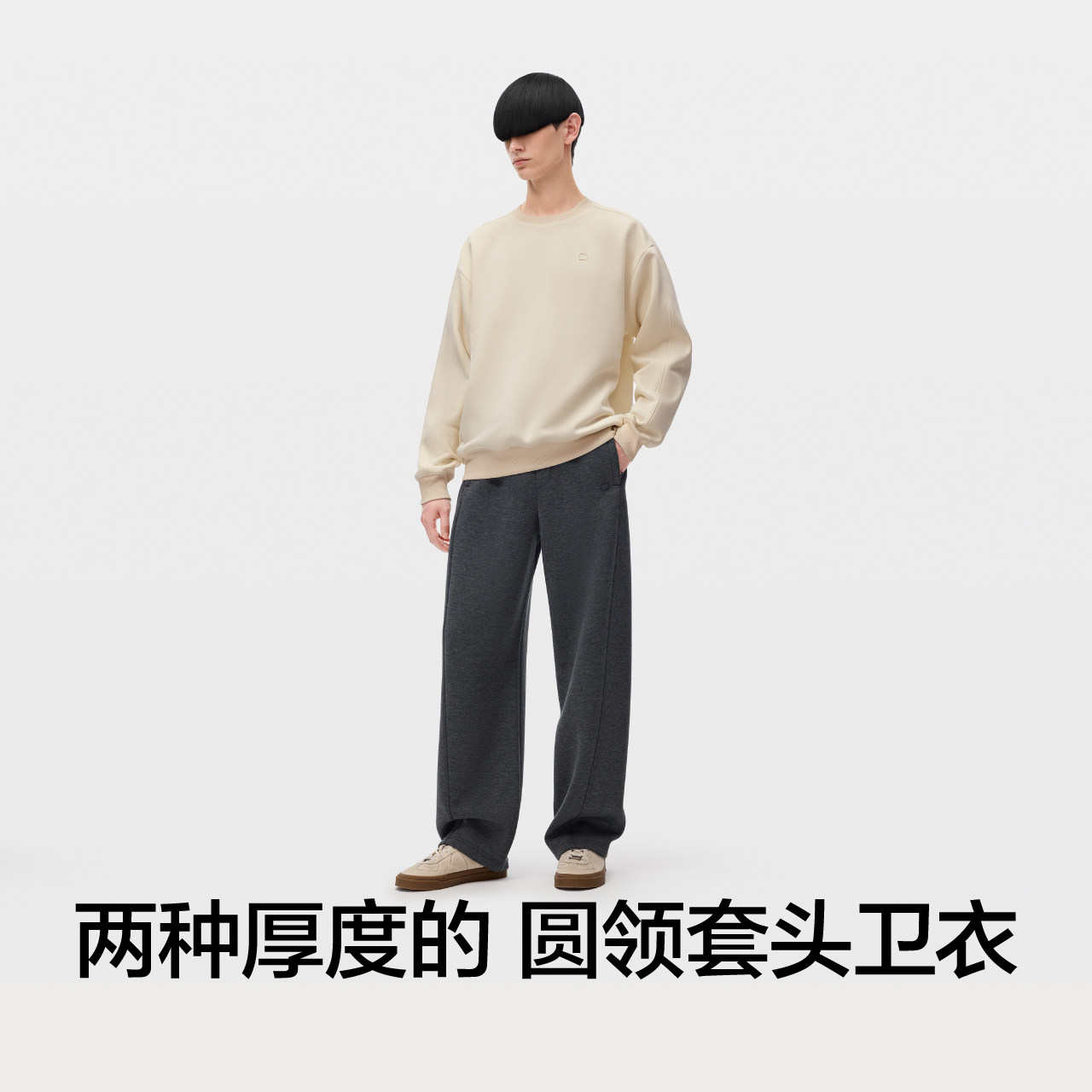 班尼路重磅卫衣男款秋季基础纯色圆领内搭男款宽松大码正肩套头衫