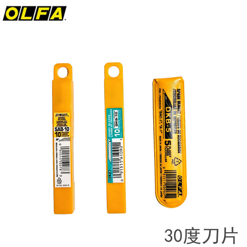 OLFA爱利华30度刀片9mm小号尖头汽车车衣改色贴膜刀30度锋利壁纸刀片贴膜SAB-10 DKB-5/10