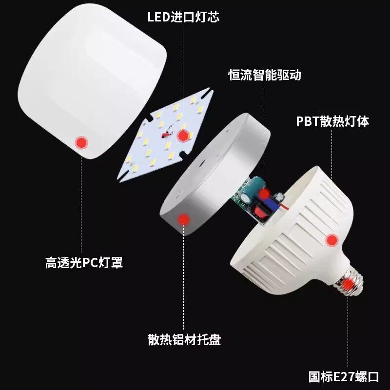 led灯泡螺口节能超亮护眼白光e27家用商用防水无频闪大功率照明灯