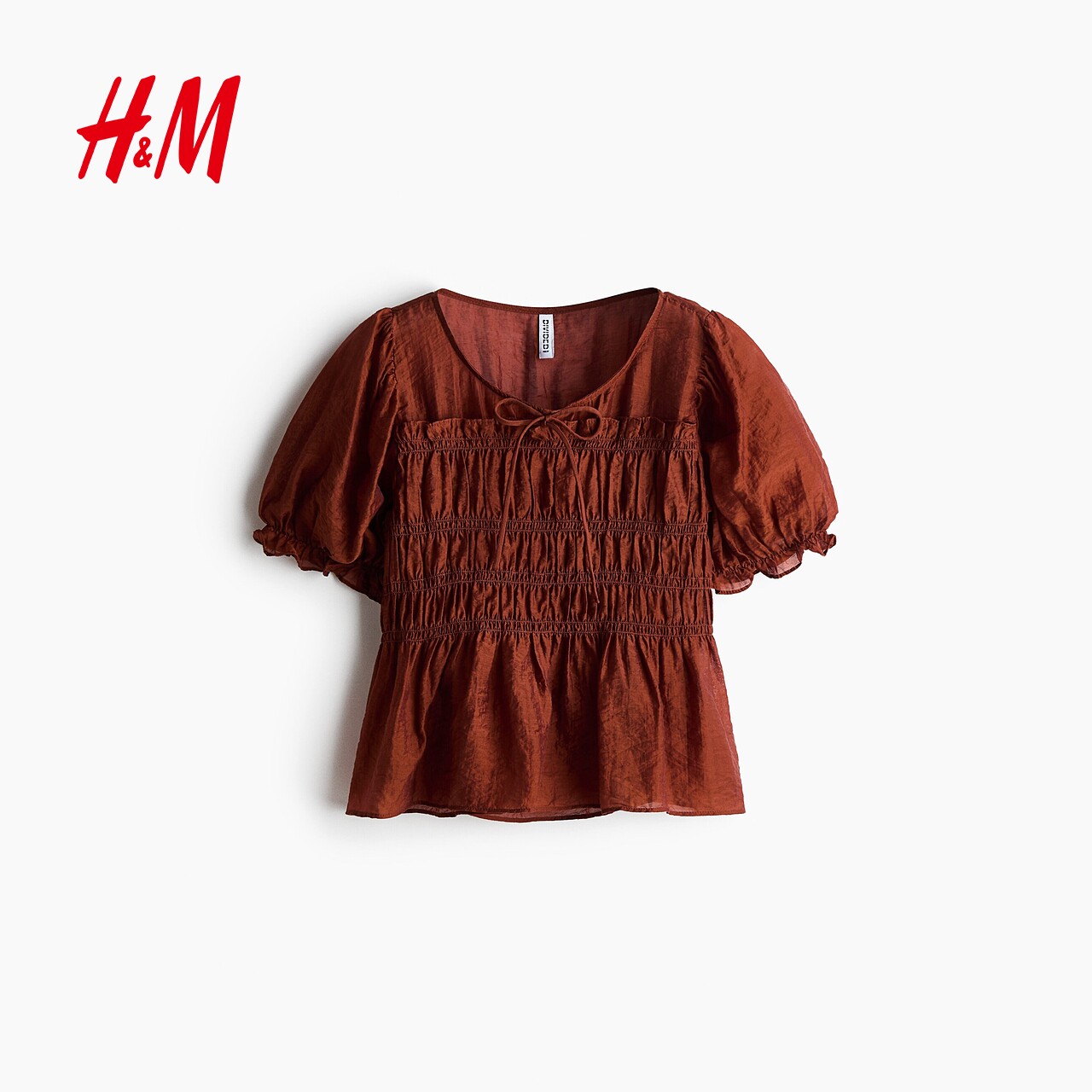 HM女装衬衫2026春季新款圆领蝴蝶结系带抽褶浪漫繁复衬衫1316657