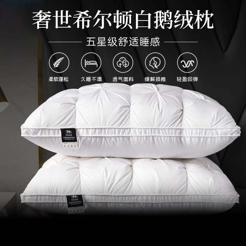 希尔顿五星级酒店羽绒枕头鹅绒枕芯单人护颈椎助睡眠家用柔软蓬松