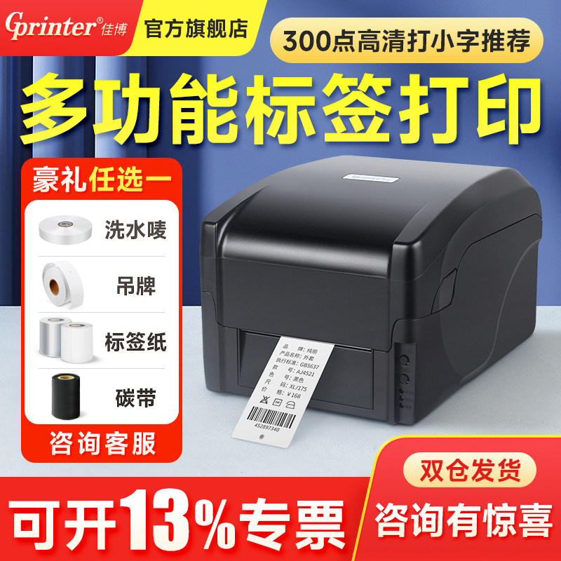 佳博GP1524T标签打印机铜版亚银纸不干胶服装吊牌洗水唛合格证珠宝货架价格食品日期贴热转印碳带条码打印机