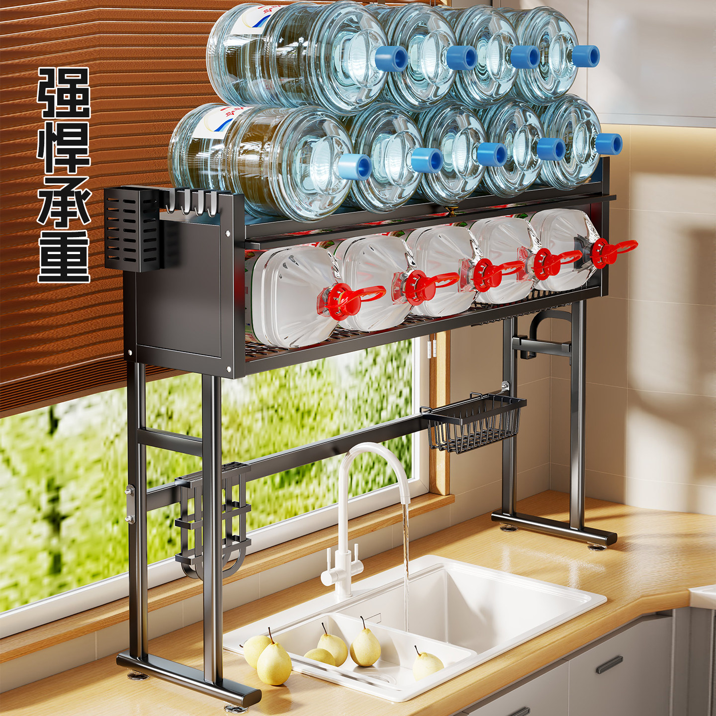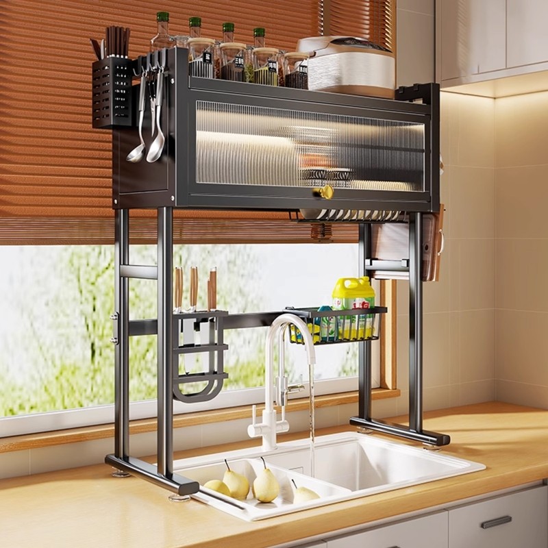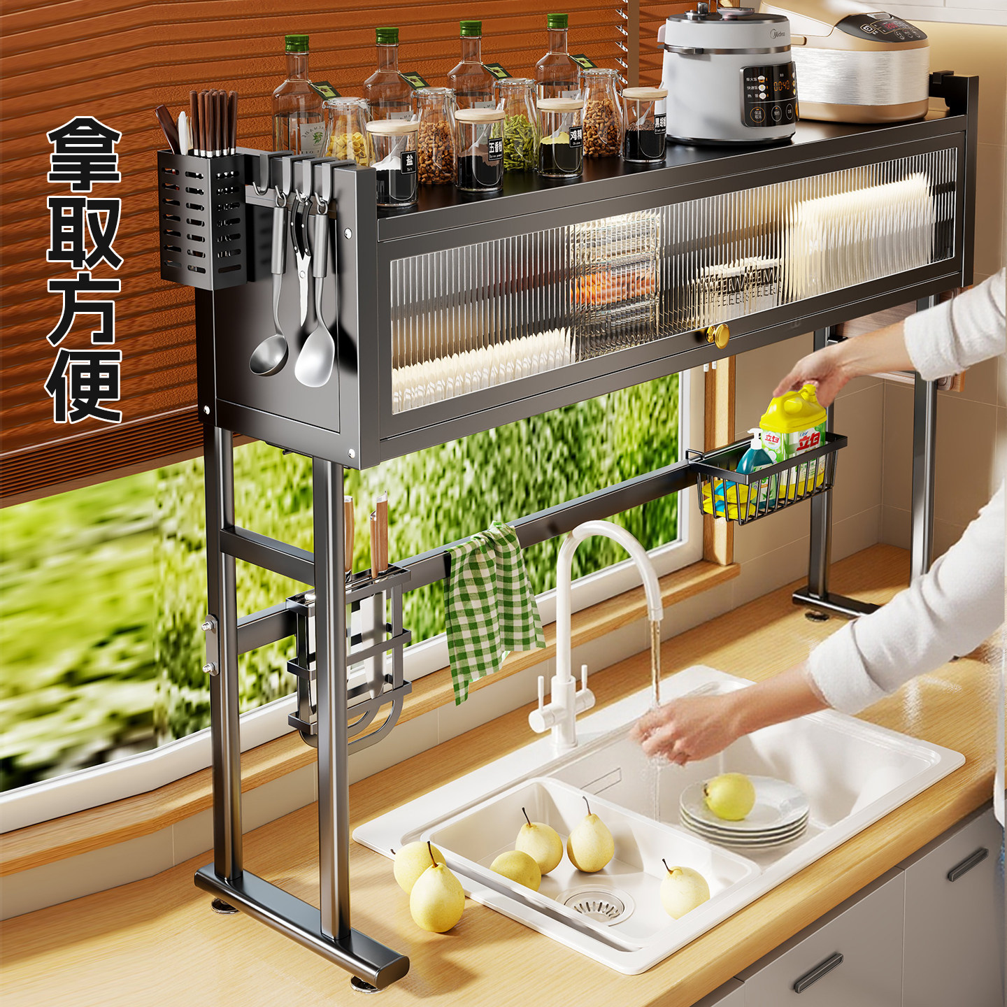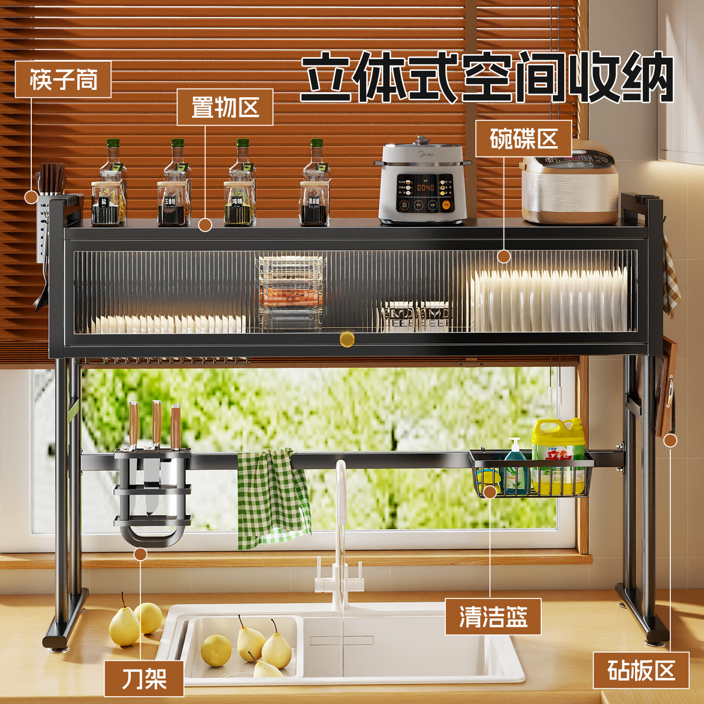 厨房碗碟收纳架洗碗池上方多功能沥水架家用免打孔筷盘放置储物柜