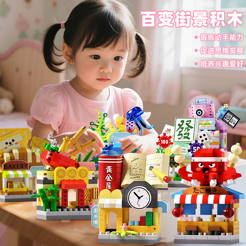 积木街景儿童拼装益智女生摆毕业季礼物摆件奖励学生小礼品套装