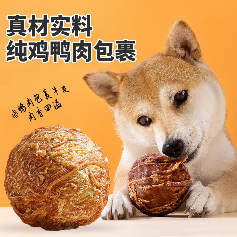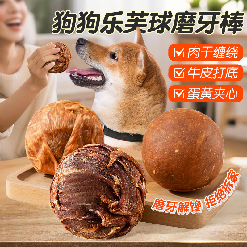 狗狗零食乐芙球牛皮磨牙棒宠物鸡鸭肉中大型小型犬耐咬夹心洁齿圈