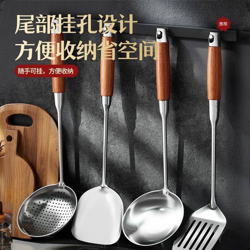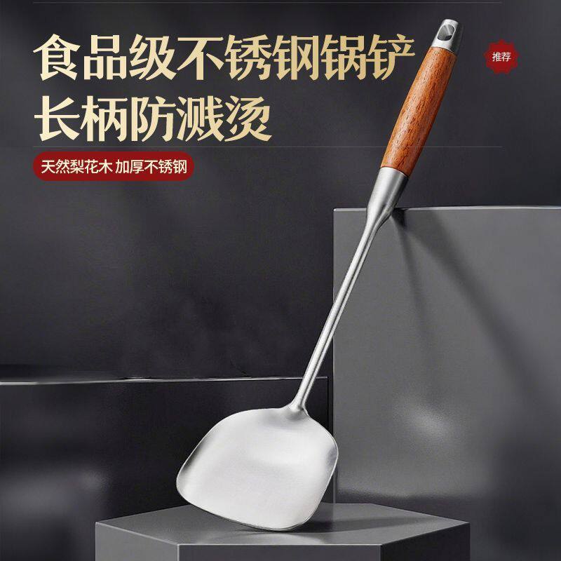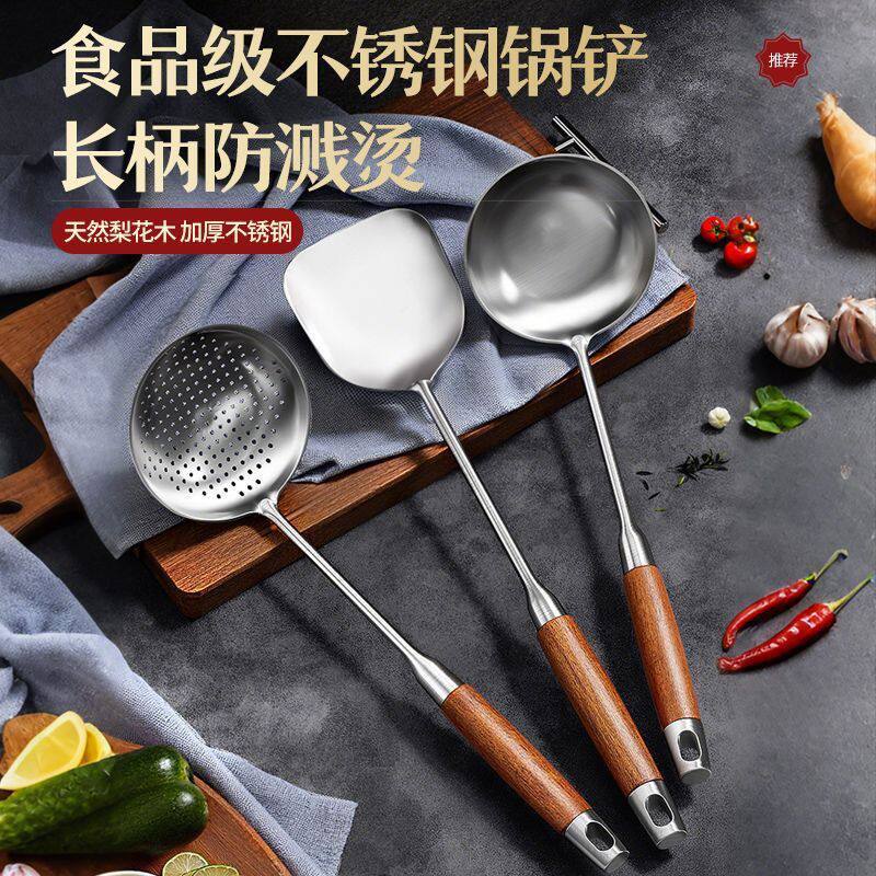 加厚不锈钢锅铲加长柄炒铲炒勺汤勺家用套装厨房炒菜厨师用勺大号