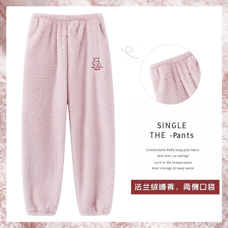 睡裤女冬季珊瑚绒加绒加厚法兰绒长裤秋冬天大码暖暖裤家居裤子