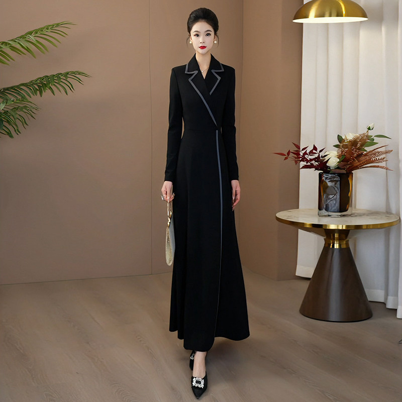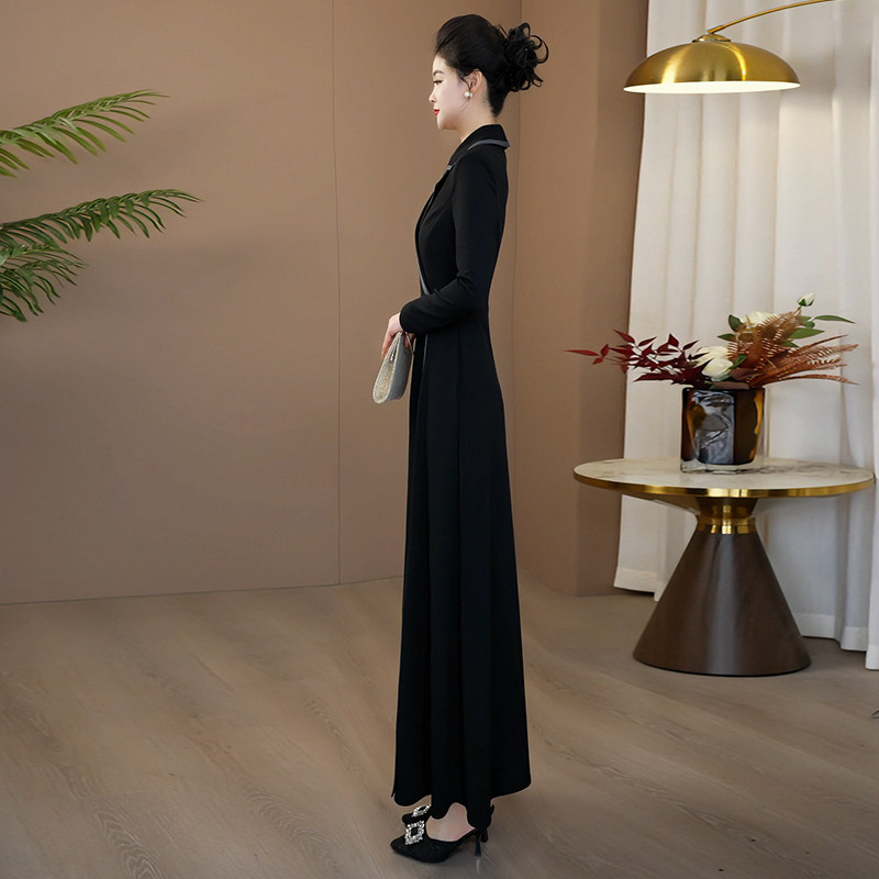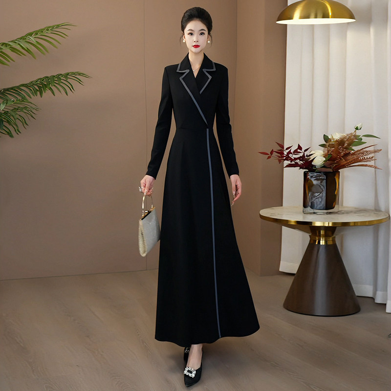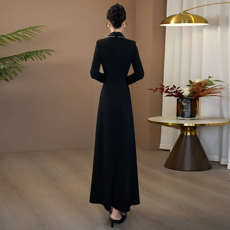 黑色长袖巨好看的早秋连衣裙气质显瘦轻奢高级感超长款连身裙210