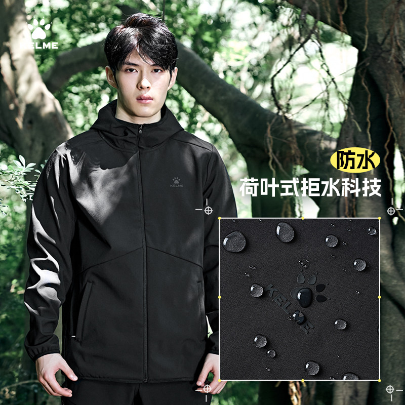 KELME卡尔美影鲨加绒风衣梭织外套男秋冬防风软壳衣运动夹克冲锋