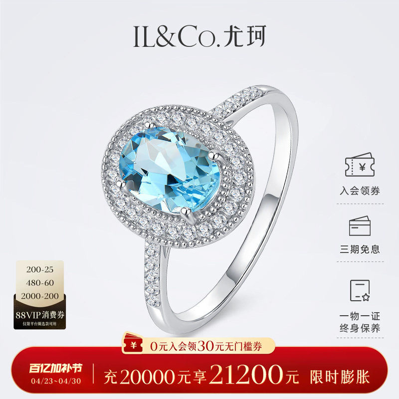 ILCO尤珂「冰蓝鸽子蛋」18K金海蓝宝戒指天然彩宝钻石克拉椭圆戒