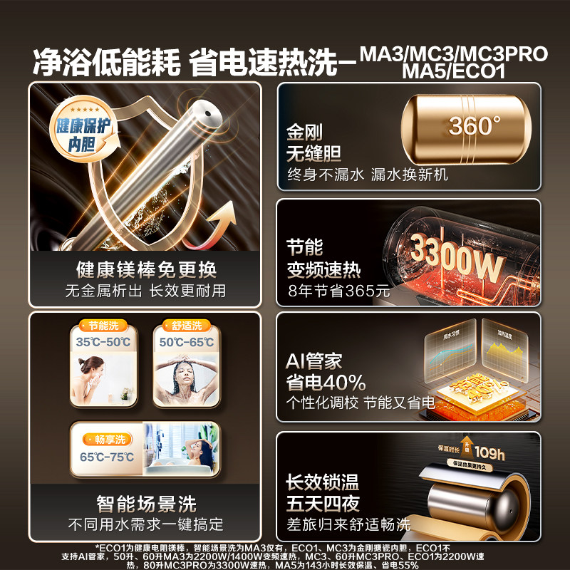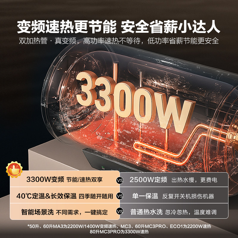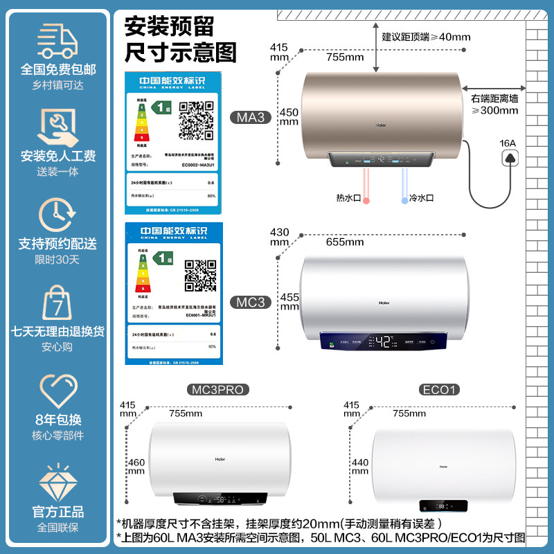 海尔电热水器洗澡家用MA3卫生间储水洗澡速热一级能效60升节能MC3
