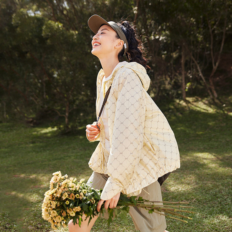 艾莱依连帽轻薄外套女春夏季新款时尚设计感轻户外透气舒适上衣