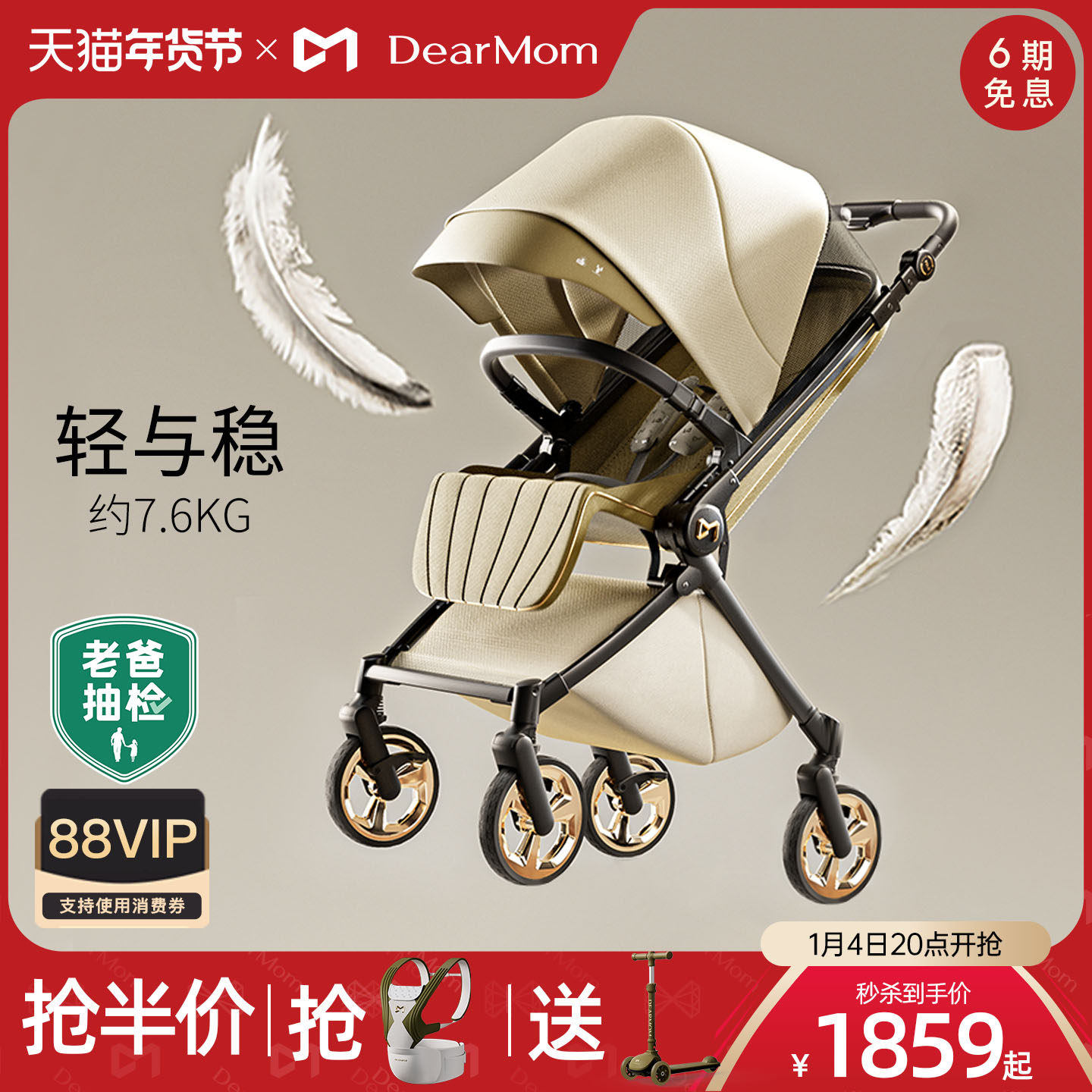 DearMom罗马假日新生儿双向轻便避震婴儿推车便携可坐躺