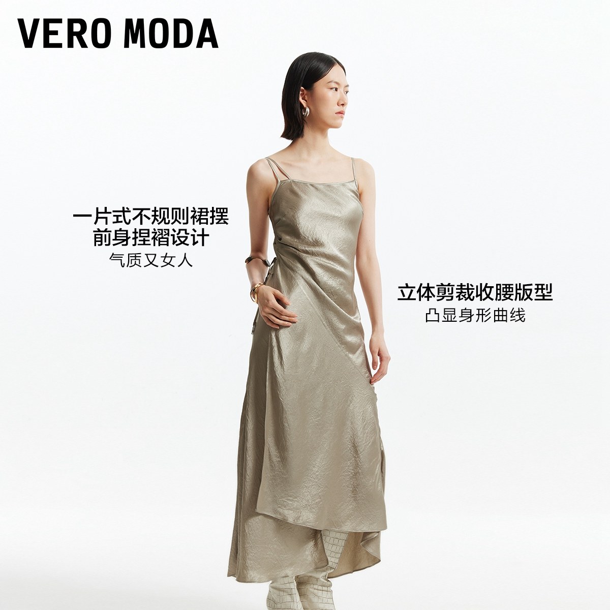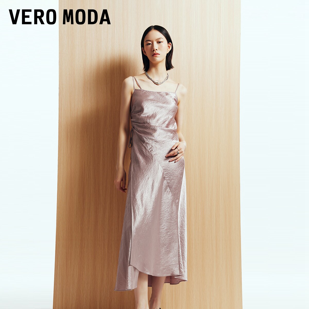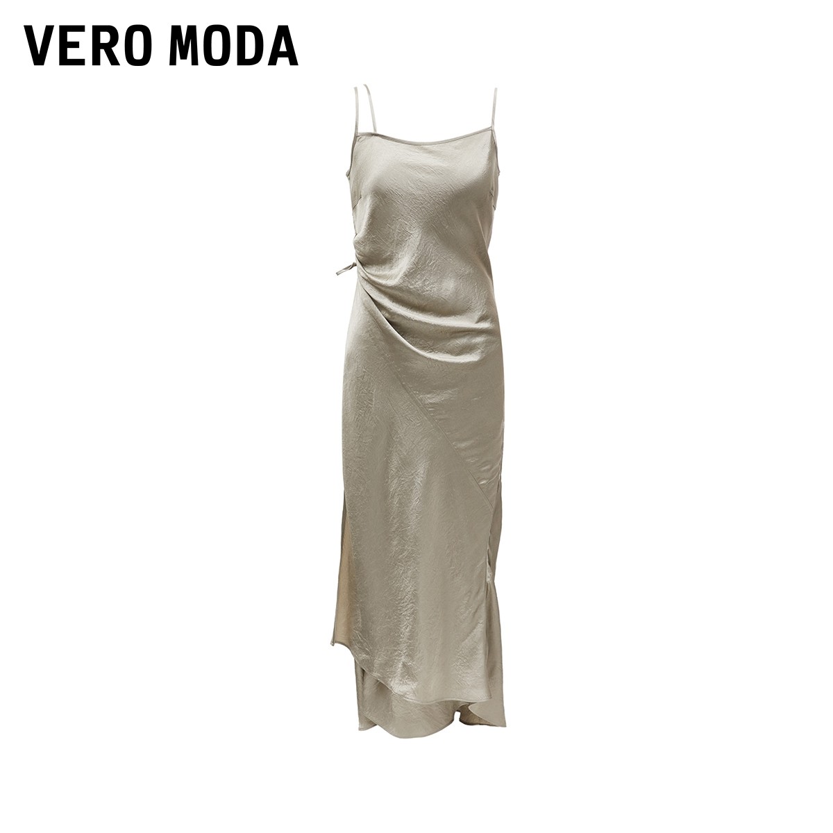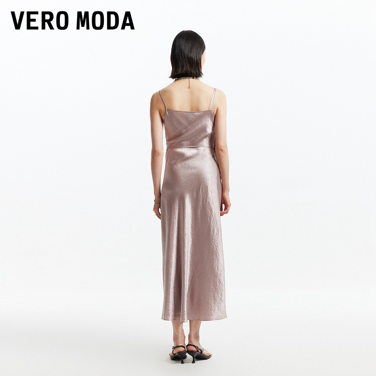 Vero Moda吊带连衣裙秋冬系带长裙光泽感面料含醋纤32437A036