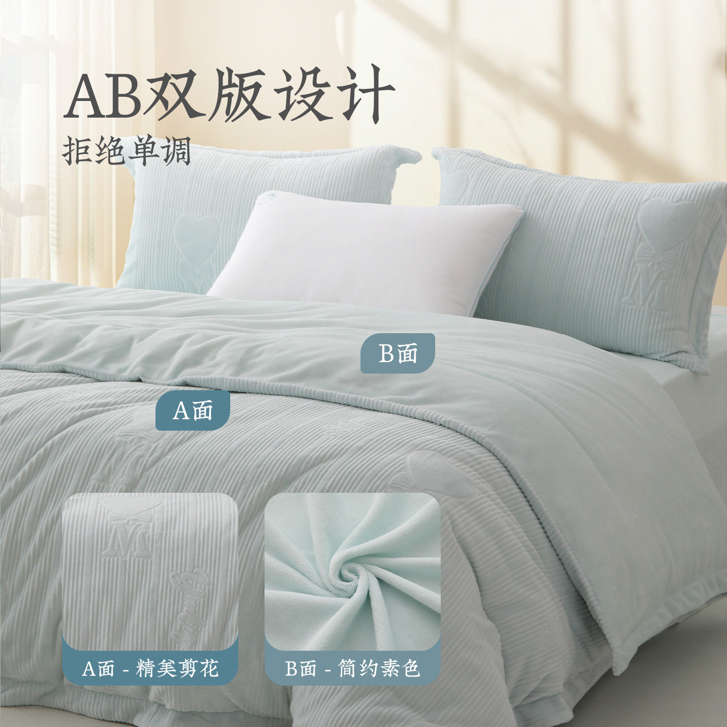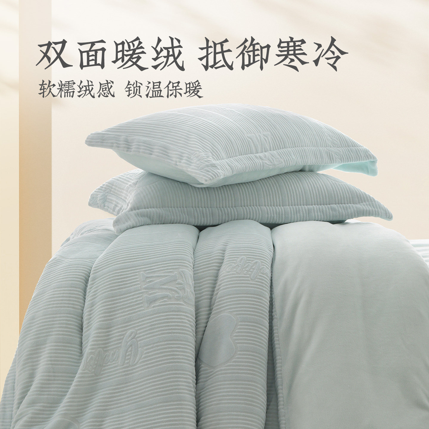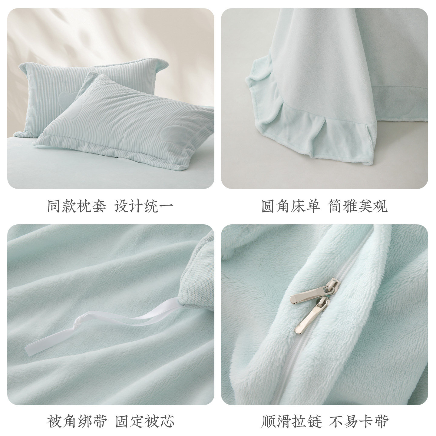 洁丽雅牛奶绒四件套冬季珊瑚绒被套床单加绒毛绒法兰绒床上三件套