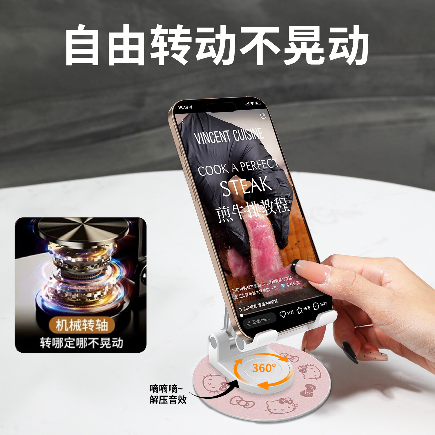 凯蒂猫正版手机桌面支架ipad平板通用360度可旋转可爱伸缩HelloKitty猫可调节升降直播拍摄网课懒人专用网红