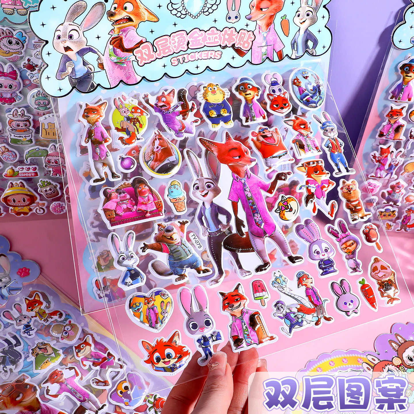 3D立体儿童卡通双层贴纸疯狂动物城Zootopia动画电影周边贴纸玩具装饰立体贴纸贴花动漫可爱贴纸套装