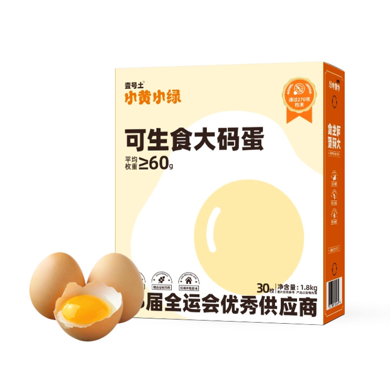 壹号食品可生食大码鸡蛋1.8kg升级大蛋营养新鲜鸡蛋30枚年货礼盒