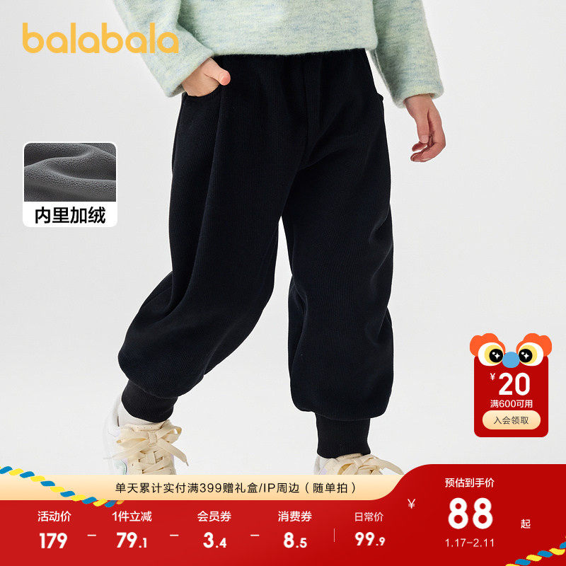 巴拉巴拉童装儿童长裤女童裤子冬季加绒针织束脚裤厚款保暖休闲裤