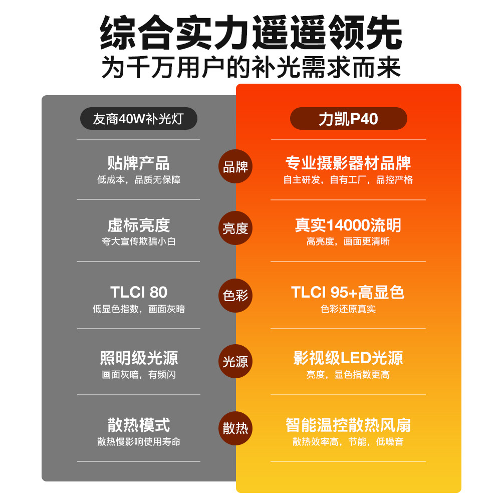 力凯P40补光灯40w拍照摄影便携式口袋灯户外夜景LED柔光美颜灯手机相机直播美食专用打光灯手持大功率常亮灯