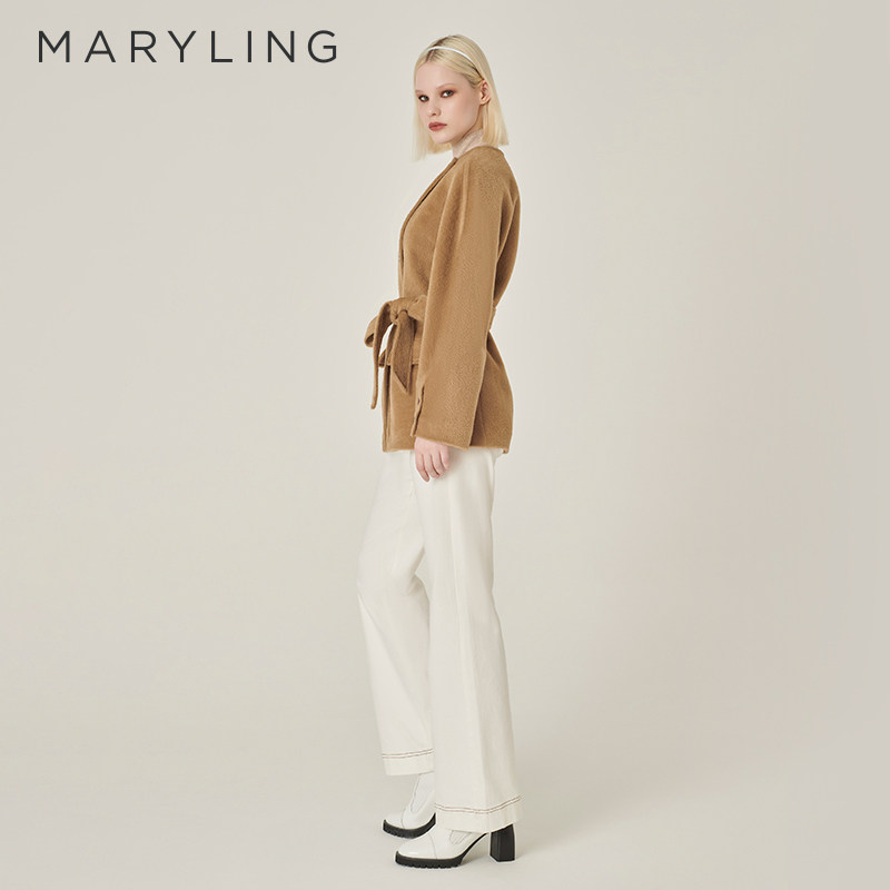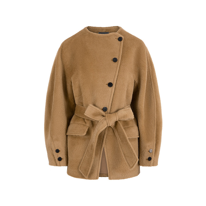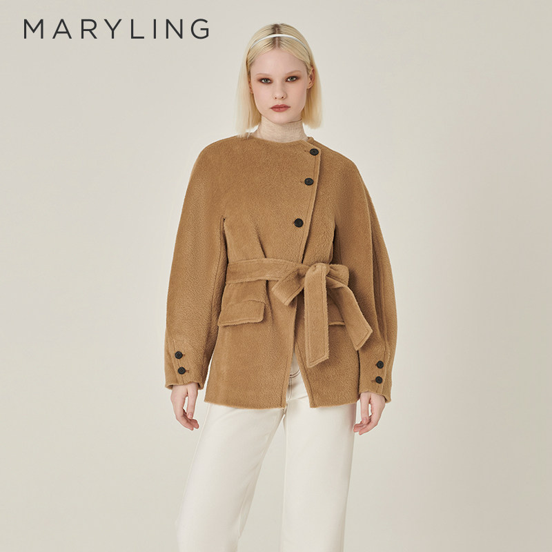 MARYLING玛俪琳冬季新品驼色圆领排扣羊驼毛外套A1EHW93130