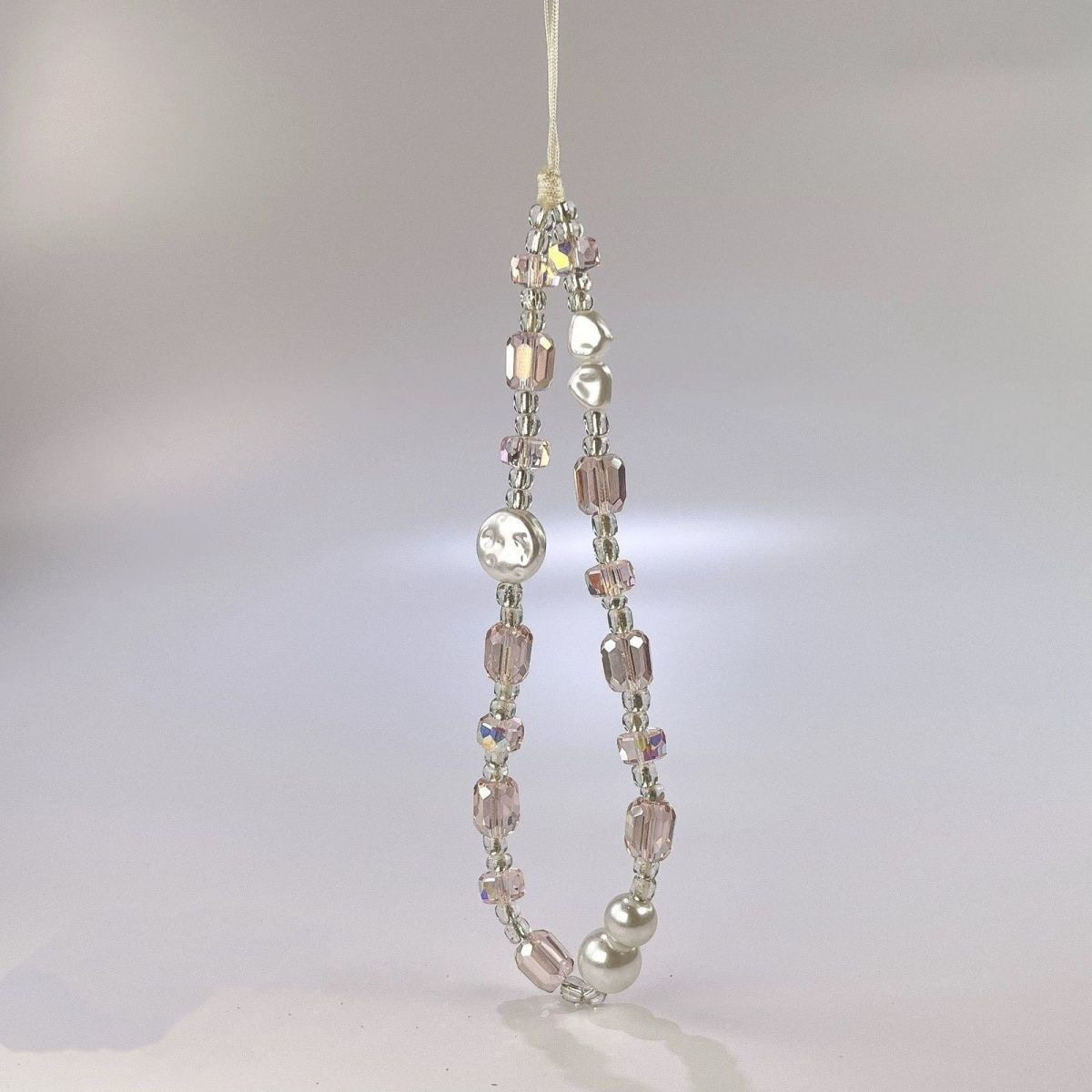 原创简约冰透粉水晶diy串珠手机链条配件ccd相机挂绳立得丢手挂件